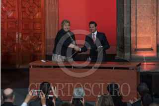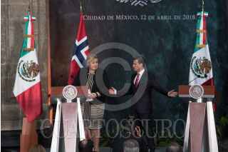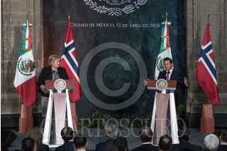 CIUDAD DE MÉXICO, 12ABRIL2018.- El presidente Enrique Peña Nieto, y Erna Solberg, Primera Ministra de Noruega, llevaron a cabo la firma del documento Declaración Conjunta entre México y Noruega, celebrado en Palacio Nacional. FOTO: MARIO JASSO /CUARTOSCURO.COM