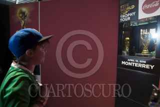 MONTERREY, NUEVO LEÓN, 12ABRIL2018.- El Trofeo del Mundial de Rusia 2018 arribó a la ciudad como parte de la Gira Mundial. Cientos de pesonas llegaron a las instalaciones de la Nave Lewis, en el interior del Parque Fundidora para tomarse una foto de recuerdo. La copa recorrerá en total 50 países en seis continentes. FOTO: GABRIELA PÉREZ MONTIEL /CUARTOSCURO.COM