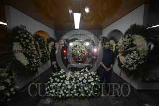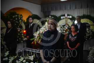 XALAPA, VERACRUZ, 12ABRIL2018.- Los restos del escritor poblano Sergio Pitól Deméneghi son velados esta tarde en la funeraria Bosques del Recuerdo en la capital del estado de Veracruz, asisten y montan guardia de honor Lidia Camacho directora de Bellas Artes así como Laura Deméneghi sobrina del escritor y familiares. FOTO: ALBERTO ROA /CUARTOSCURO.COM