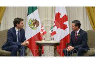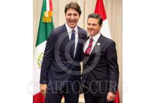 LIMA, PERÚ, 13ABRIL2018.- En el marco de las actividades de la VIII Cumbre de las Américas, el Presidente Enrique Peña Nieto sostuvo una reunión con el Primer Ministro de Canadá, Justin Trudeau, en la que dialogaron sobre el avance en las negociaciones del TLCAN. FOTO: PRESIDENCIA /CUARTOSCURO.COM