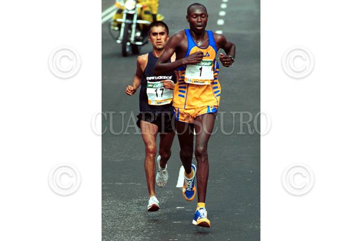 El mexicano Enrique Montiel entablo una reñida competencia con Eliud Keiring de Kenia durante el Maraton de la Ciudad de México. FOTO: Christian Palma/CUARTOSCURO.COM