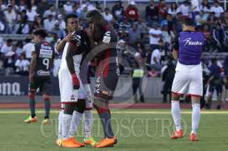 PUEBLA, PUEBLA, 14ABRIL2018.- Luis Advíncula, jugador de Lobos BUAP, fue consolado por sus compañeros tras la derrota 0-1 de los Lobos BUAP ante el Necaxa en partido correspondiente a la jornada 15 del torneo Clausura 2018 de la Liga MX celebrado en el estadio olímpico universitario de la BUAP. FOTO: RÍOS /CUARTOSCURO.COM
