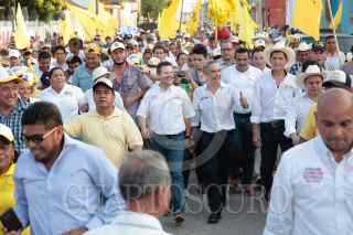 HUIMANGUILLO, TABASCO, 14ABRIL2018.- El Coordinador Nacional del Proyecto de Gobierno de Coalición, Miguel Ángel Mancera Espinosa y el candidato a gobernador Gerardo Gaudiano, realizaron una caminata por las principales calles de Huimanguillo, como parte de su campaña proselitista. FOTO: CUARTOSCURO.COM