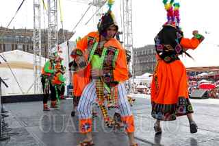 CIUDAD DE MÉXICO, 14ABRIL2018.- Con majestuosos vestuarios, máscaras, sombreros, bailes típicos y música tradicional, se vivió la primera jornada del Foro Artístico de la Feria Internacional de las Culturas Amigas 2018 en el Zócalo de la Ciudad de México. FOTO: CUARTOSCURO.COM