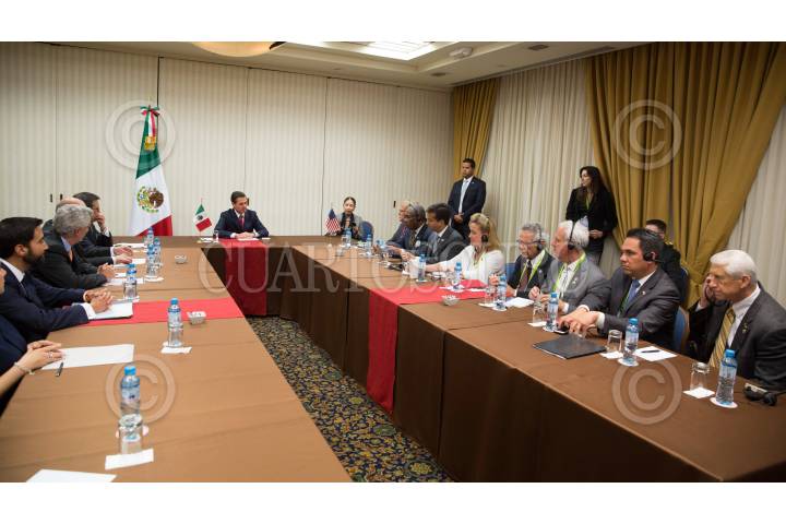 LIMA, PERU, 14ABRIL2018.- Enrique Peña Nieto se reunió con una delegación de congresistas estadunidenses, encabezada por el representante Paul Cook, Presidente del Subcomité para el Hemisferio Occidental del Comité de Asuntos Exteriores, con quienes conversó sobre la importancia de continuar con la cooperación bilateral en materia de seguridad, con base en el principio de responsabilidad compartida. FOTO: PRESIDENCIA /CUARTOSCURO.COM