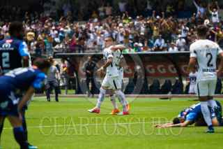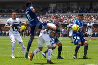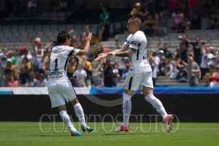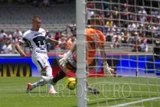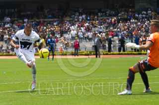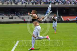 CIUDAD DE MÉXICO, 15ABRIL208.- El chileno Nicolás Castillo anoto tres goles en la victoria de los Pumas de la UNAM de 4-2 sobre la Franja del Puebla, en el Estadio Olímpico. FOTO: MOISÉS PABLO /CUARTOSCURO.COM