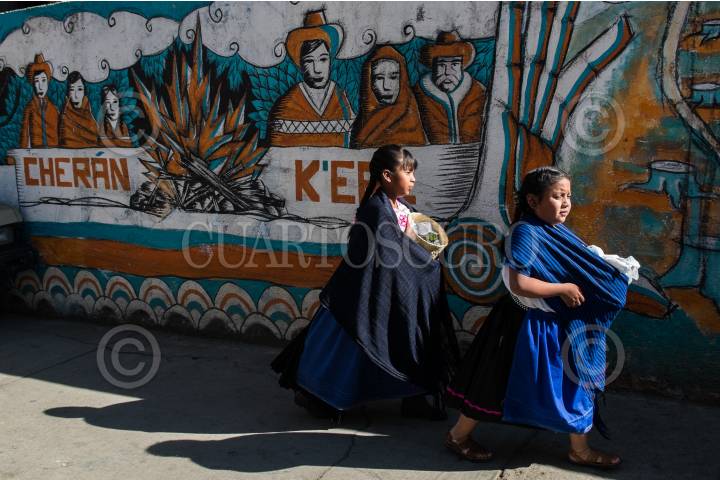 CHERÁN, MICHOACAN, 15ABRIL2018.- En el marco del séptimo aniversario del inicio del levantamiento de Cherán por la defensa de sus bosques. El pueblo ofrece una celebración por los acontecimientos donde invitan a otras comunidades a formar parte por un par de días de la fiesta. Habitantes pertenecientes a los 17 municipios de la Meseta Purépecha como Charapan, Cherán, Los Reyes, Nahuatzen, Nuevo San Juan Parangaricutiro, Parachó, Periban, Tancítaro, Tingambato, Uruapan y Ziracuaretiro, protegen las últimas reservas forestales del estado. FOTO: ANDREA MURCIA /CUARTOSCURO.COM