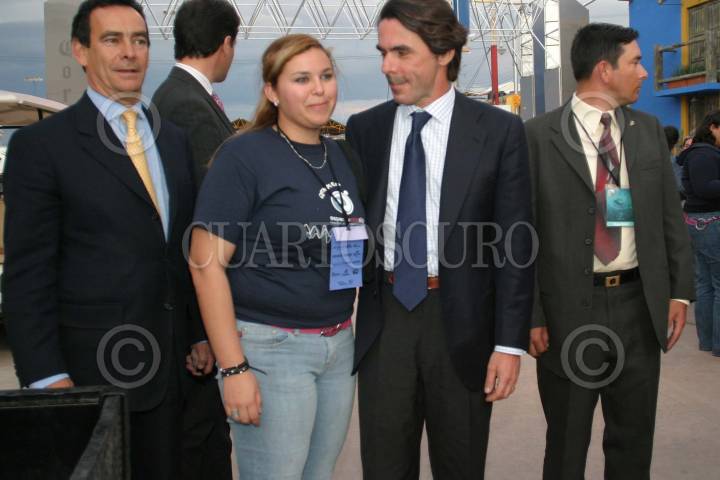 SANLUIS POTOSI, SAN LUIS POTOSI14MARZO2005.- El expresidente de España Jose María Aznar, la escritora Olga Wormat convive con los asistente a Espacio 2005. FOTO: Nelly Salas/CUARTOSCURO.COM