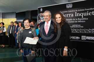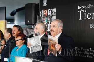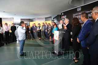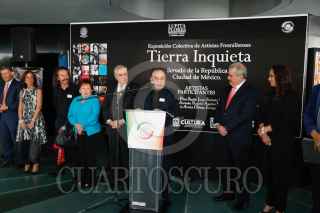 CIUDAD DE MÉXICO, 17ABRIL2018.- El escritor Víctor del Real, durante su participacion en la inauguración de la exposición colectiva de artistas fresnillenses "Tierra Inquieta" en el senado de la República. El evento estuvo encabezado por José Olvera Acevedo, senador de Fresnillo del PRI. Algunos de los artistas que participaron en la expo son Pedro Valtierra, director de la agencia y revista Cuartoscuro, Jorge Saldaña, Rogelio Aguilar, entre otros. FOTO: CUARTOSCURO.COM
