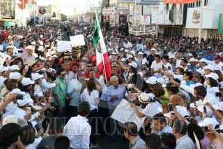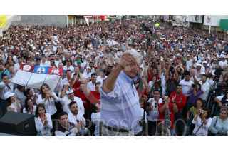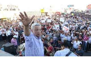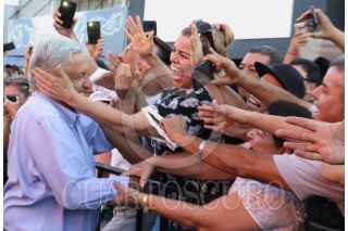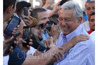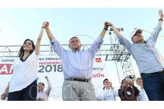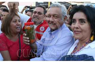 CAJEME, SONORA, 17ABRIL2018.- Andrés Manuel Lopez Obrador, candidato de MORENA a la presidencia de republica visito el centro historico de Ciudad Obregón donde realizo un mitin para dar a conocer sus propuestas en caso de ganar la presidencia. FOTO: SAÚL LÓPEZ / CUARTOSCURO.COM