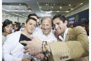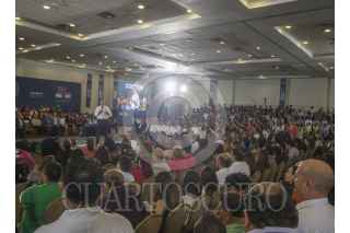 MONTERREY, NUEVO LEÓN, 18ABRIL2018.- José Antonio Meade, candidato a la presidencia por la coalición "Todos por México" sostuvo una reunión con empresarios militantes y simpatizantes dentro de las instalaciones de CINTERMEX. FOTO: GABRIELA PÉREZ MONTIEL /CUARTOSCURO.COM