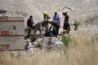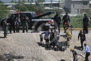 CIUDAD JUÁREZ, CHIHUAHUA, 18ABRIL2018.- El cuerpo de un hombre descuartizado, fue encontrado en el interior de una alcantarilla de la red general del drenaje, en la colonia Libertad. El hallazgo en ese pozo de visita ubicado a la orilla de un dique pluvial, en el cruce de calles Calcopirita y Nácar, fue hecho por trabajadores de la Junta Municipal de Agua y Saneamiento (Jmas). Los empleados de la descentralizada procedían a realizar la limpieza del foso cuando advirtieron la presencia de varias bolsas de hule color negro. En el interior de los plásticos fueron encontrados los miembros cercenados de una persona. FOTO: NACHO RUIZ /CUARTOSCURO.COM