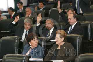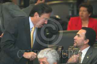 MEXICO D.F 15 MARZO 2005.- Demetrio Sodi del PRD platica con Carlos Rojas del PRI durante la sesión ordinaria de la Cámara alta. FOTO: Eunice Adorno/CUARTOSCURO.COM