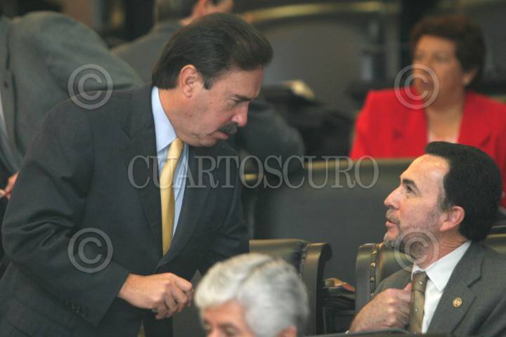 MEXICO D.F 15 MARZO 2005.- Demetrio Sodi del PRD platica con Carlos Rojas del PRI durante la sesión ordinaria de la Cámara alta. FOTO: Eunice Adorno/CUARTOSCURO.COM