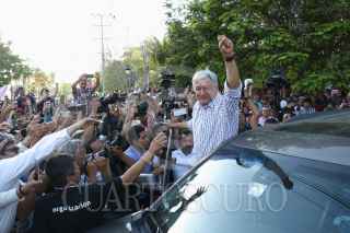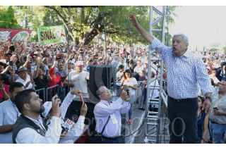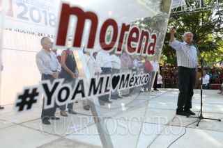 LOS MOCHIS, SINALOA, 18ABRIL2018.- Andrés Manuel Lopez Obrador, candidato de MORENA a la presidencia de república se reunió con simpatizantes de MORENA en la plaza central de Los Mochis donde dio a conocer su propuesta de gobierno en caso de ganar la presidencia de la república. FOTO: SAUL LÓPEZ /CUARTOSCURO.COM