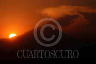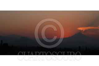 CUERNAVACA, MORELOS, 19ABRIL2018.- Una fumarola emitida por el volcán Popocatépetl durante el amanecer es dispersada por el viento. FOTO: MARGARITO PÉREZ RETANA /CUARTOSCURO.COM