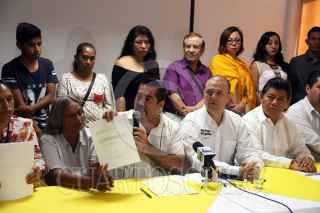 CUERNAVACA, MORELOS, 19ABRIL2018.- Rodrigo Gayosso, candidato a la gubernatura por el Partido de la Revolución Democrática, durante la conferencia de prensa donde militantes del PRI, firmaron su renuncia y se integraron a su campaña. FOTO: MARGARITO PÉREZ RETANA /CUARTOSCURO.COM