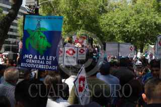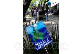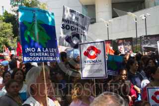 CIUDAD DE MÉXICO, 19ABRIL2018.- Integrantes del Sindicato de Trabajadores de la Universidad Nacional Autónoma de México se manifestaron en contra de la posible aprobación de la Ley General de Biodiversidad afuera del Senado de la República. FOTO: MOISÉS PABLO /CUARTOSCURO.COM