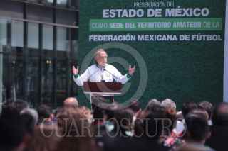 TOLUCA, ESTADO DE MÉXICO, 19ABRIL2018.- Decio de María, titular de la Federación Mexicana de Fútbol, Alfredo Castillo Cervantes, Director General de la Comisión Nacional de Cultura Física y Deporte y el gobernador del Estado de México, durante el anuncio de que el Estado de México será sede de ocho torneos de fútbol organizados por la FMF como parte del proyecto Territorio Amateur, que tiene como objetivo identificar nuevos talentos. FOTO: ARTEMIO GUERRA BAZ /CUARTOSCURO.COM