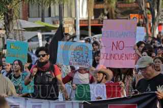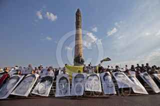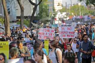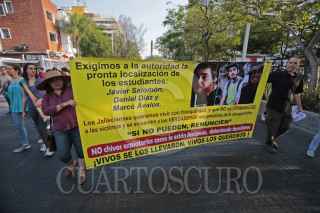 GUADALAJARA, JALISCO, 19ABRIL2018.- Decenas de personas entre estudiantes de la Universidad de Medios Audiovisuales del CAAV, familiares y amigos de personas extraviadas, marcharon de la Glorieta de los Niños Héroes o de los Desaparecidos hasta Palacio de Gobierno para exigir al gobierno en turno la aparición de las personas desaparecidas en el estado y el país. FOTO: FERNANDO CARRANZA GARCIA/CUARTOSCURO.COM