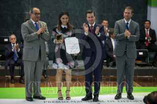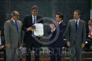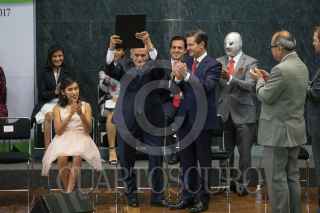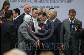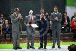 CIUDAD DE MÉXICO, 20ABRIL2018.- El Hijo del Santo y Enrique Peña Nieto, presidente de México, durante la ceremonia de entrega del Premio Nacional de Deportes y Premio Nacional de Mérito Deportivo 2017, realizado en la residencia oficial de Los Pinos. FOTO: ADOLFO VLADIMIR /CUARTOSCURO.COM