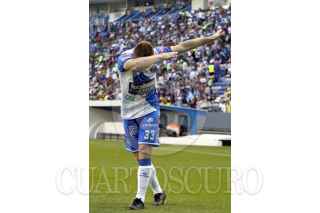 PUEBLA, 20ABRIL2018.- El jugador Alejandro Chumacero festeja el gol anotado en partido ante las Águilas del América, con marcador final 3-1 correspondiente a la jornada 16 del torneo Clausura 2018 de la Liga MX celebrado en el estadio Cuauhtémoc. FOTO: HILDA RÍOS /CUARTOSCURO.COM