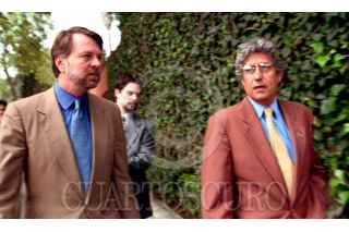 Jorge G. Castañeda y Adolfo Aguilar Zinser encargados de las relaciones exteriores del equipo de transición de Vicente Fox salen de la casa donde despacha el próximo primer madatario de la Nación. FOTO: Victoria Valtierra/CUARTOSCURO.COM