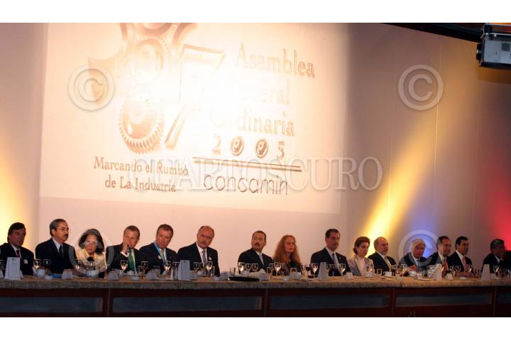 MEXICO, D.F., 15MARZO2005.- Vicente Fox Quesada, presidente de la República, Manlio Fabio Beltrones, diputado del PRI, Diego Fernandez de Cevallos, senador del PRI, Mariano Azuela Huitrón, presidente de la SCJN y Enrique Jackson, senador de PRI, durante la ceremonia de los 180 años de creación de la Suprema Corte de Justicia de la Nación, que se realizó en el Senado. FOTO: Moisés Pablo/CUARTOSCURO.COM