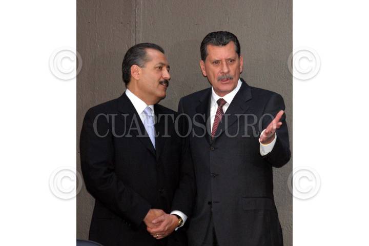 MEXICO, D.F., 15MARZO2005.- Vicente Fox Quesada, presidente de la República, Manlio Fabio Beltrones, diputado del PRI, Diego Fernandez de Cevallos, senador del PRI, Mariano Azuela Huitrón, presidente de la SCJN y Enrique Jackson, senador de PRI, durante la ceremonia de los 180 años de creación de la Suprema Corte de Justicia de la Nación, que se realizó en el Senado. FOTO: Moisés Pablo/CUARTOSCURO.COM