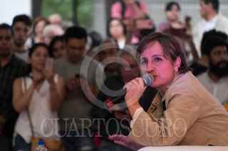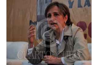 CIUDAD DE MÉXICO, 21ABRIL2018.- María del Carmen Aristegui, periodista mexicana, durante la charla que ofreció en el marco de la Fiesta del Libro y la Rosa con sede en la UNAM. FOTO: ANDREA MURCIA /CUARTOSCURO.COM