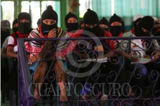 SAN CRISTOBAL DE LAS CASAS, 21ABRIL2018.- Séptima sesión de actividades en el conversatorio "Miradas, escuchas, palabras: ¿prohibido pensar?", encuentro entre el Concejo Indígena de Gobierno, las redes de apoyo del CIG, periodistas y artistas y el Ejército Zapatista de Liberación Nacional (EZLN) para hacer una evaluación sobre el recorrido y la participación del CIG y Marichuy como aspirante a candidata independiente. FOTO: DALIRI OROPEZA /CUARTOSCURO.COM