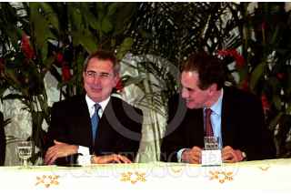 Ernesto Zedillo conversa con el secretario de la Secofi, Herminio Blanco durante la ceremonia para conmemorar el 126 aniversario de la Federación del Consejo Directivo de la Cámara Nacional de Comercio de la Ciudad de México. FOTO: Victoria Valtierra/CUARTOSCURO. COM