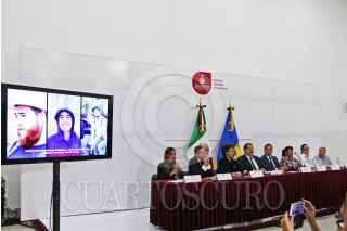 GUADALAJARA, JALISCO, 23ABRIL2018.- Raúl Sánchez Jiménez Fiscal General del Estado, encabezo una conferencia de prensa en las instalaciones de la Fiscalía para informar que Salomón Aceves, Daniel Díaz y Marcos García, estudiantes de la carrera de cine de la Universidad de Medios Audiovisuales del CAAV desaparecidos el pasado 19 de Marzo, fueron encontrados disueltos en acido en una finca de la calle Prado Soleado en la colonia Rancho de la Cruz del municipio de Tonalá el pasado miércoles, también comento que los alumnos fueron victimados por integrantes de una célula criminal que opera en la entidad. FOTO: CUARTOSCURO.COM