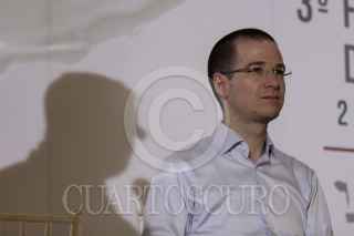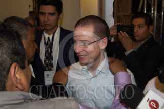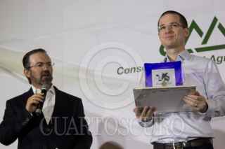 CIUDAD DE MÉXICO, 24ABRIL2018.- Salomón Chertorivski, asesor económico de Ricardo Anaya, candidato a la presidencia de la República por la coalición “Por México al Frente”, y el candidato a la salida del tercer foro Nacional de Lechería, celebrado en el casino de Campo Marte. FOTO: GALO CAÑAS /CUARTOSCURO.COM