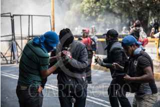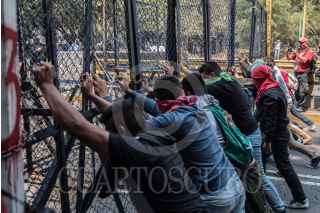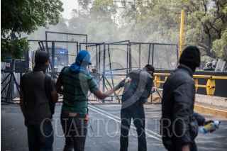 CIUDAD DE MÉXICO, 24ABRIL2018.- Un grupo de personas con el rostro cubierto lanzaron bombas molotov a un grupo de granaderos quienes les impedían el paso sobre calzada chivatito, durante la realización de una manifestación por los 43 normalistas desaparecidos de Ayotzinapa. FOTO: MARIO JASSO /CUARTOSCURO.COM