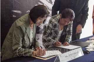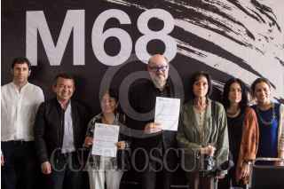CIUDAD DE MÉXICO, 24ABRIL2018.- Ander Azpiri, subdirector académico del Centro Cultural Universitario de Tlatelolco (CCUT); Jorge Gálvez, director del Museo de la Memoria Indómita; Priscila Chávez Hoyos y Concepción González, integrantes del comité Eureka; Ricardo Raphael, director general CCUT, y Sandra Lorenzano, subdirectora de Vinculación y Comunidad CCUT, durante la conferencia de prensa para dar a conocer detalles de la digitalización de documentos del comité Eureka que integraran “M68”, programa de conmemoración del movimiento y que busca la presentación de nuevos archivos acerca del movimiento estudiantil de 1968, con motivo del 50 aniversario de la tragedia de Tlatelolco. FOTO: GALO CAÑAS /CUARTOSCURO.COM