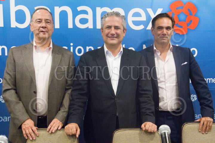 CIUDAD DE MÉXICO, 25ABRIL2018.- Alberto Gómez, Ernesto Torres Cantú y Francisco Tobias, directivos de Citibanamex, durante la rendición del Informe de Labores de este Banco. El evento se realizó en un conocido hotel de la Capital. FOTO: VICTORIA VALTIERRA /CUARTOSCURO.COM