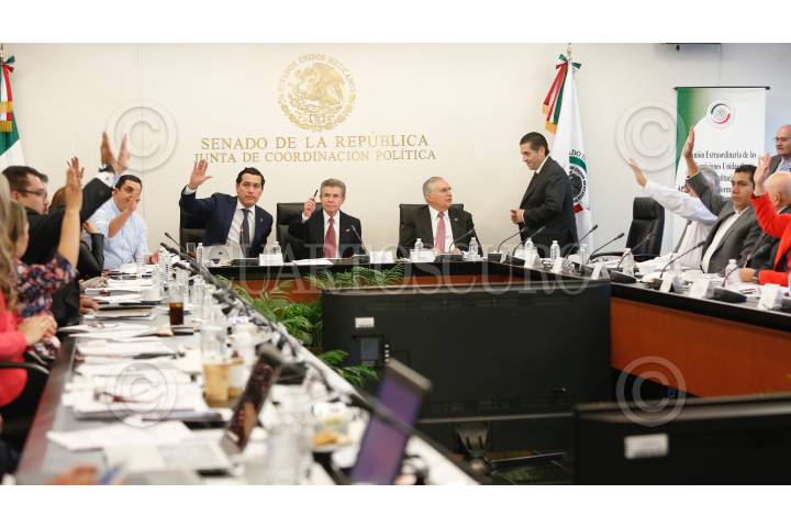 CIUDAD DE MÉXICO, 26ABRIL2018.- Inició la Reunión Extraordinaria de las Comisiones Unidas de Puntos Constitucionales; de Gobernación; de Justicia; de Reforma del Estado, y de Estudios Legislativos, para dictaminar la ley que elimina el fueron en funcionarios, legisladores y del Presidente de México, remitida por la Cámara de Diputados para su aprobación y/o adición. En la imagen los senadores Enrique Burgos y Alejandro Encinas. FOTO: CUARTOSCURO.COM