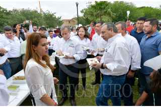 RÍO BRAVO, TAMAULIPAS, 26ABRIL2018.- Al término del mitin que encabezó en Río Bravo, Tamaulipas, el candidato de la coalición Todos por México, José Antonio Meade, convivió en una taquiza con simpatizantes. El abanderado presidencial comió tacos de carne asada, populares en la región, y se tomó fotografías con sus seguidores, antes de viajar a Reynosa, donde continuará su gira proselitista por la entidad. FOTO: CUARTOSCURO.COM