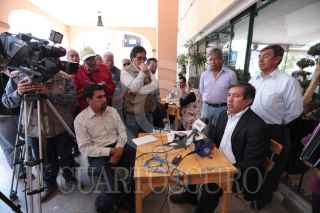 TOLUCA, ESTADO DE MÉXICO, 26ABRIL2018.- Santiago Pérez, representante legal de comuneros de San Jerónimo Acazulco, municipio de Ocoyoacac, le solicitaron al Presidente Enrique Peña Nieto la salida de los Policías Federales que resguardan las obras del Tren Interurbano México-Toluca, ya que esta violando un amparo que suspende las obras. FOTO: ARTEMIO GUERRA BAZ /CUARTOSCURO.COM