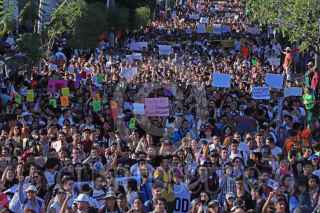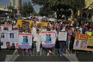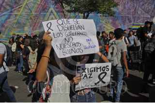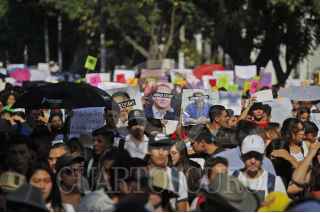 GUADALAJARA, JALISCO, 26ABRIL2018.- Miles de personas entre estudiantes de la Universidad de Medios Audiovisuales del CAAV, de la U. de G., así como de otras Universidades privadas y miembros de la sociedad civil, realizaron una marcha denominada “Marcha por la Paz” que partió de las instalaciones de la Rectoría General de la Universidad de Guadalajara hacia la Glorieta de los Desaparecidos o Niños Héroes, esto para protestar y exigir justicia por el caso de Salomón Aceves, Marco García y Daniel Díaz, estudiantes de cine que fueron desaparecidos y asesinados en el estado de Jalisco, así como por todos los desaparecidos del País y la paz en el mismo. FOTO: CUARTOSCURO.COM