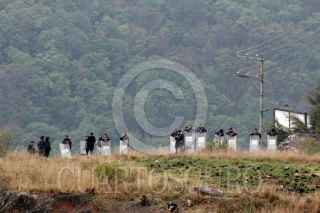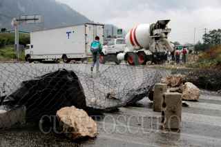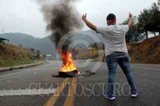 SAN CRISTÓBAL DE LAS CASAS, CHIAPAS, 26ABRIL2018.- Maestros pertenecientes a la Coordinadora Nacional de Trabajadores de la Educación (CNTE), bloquearon el tramo carretero San Cristóbal - Tuxtla Gutiérrez a la altura del km 46, para exigir el pago de docentes que han cubierto interinatos para la Secretaría de Educación. Al lugar arribaron un aproximado de 300 elementos de Seguridad Pública para resguardar el tramo carretero. FOTO: JACOB GARCÍA /CUARTOSCURO.COM