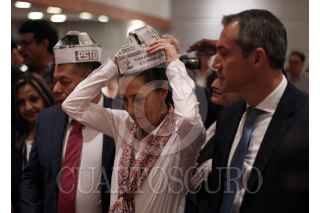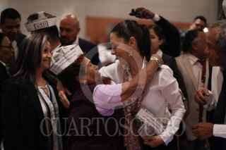 CIUDAD DE MÉXICO, 27ABRIL2018.- Claudia Sheinbaum, candidata a la jefatura de gobierno por la coalición "Juntos Haremos la Historia" entre los partidos Morena, PT y PES, fue invitada al 95 aniversario del Día del Voceador de la Unión de Expendedores y Voceadores de los Periódicos de México A.C. realizado en un Hotel de centro histórico. FOTO: ADOLFO VLADIMIR /CUARTOSCURO.COM