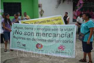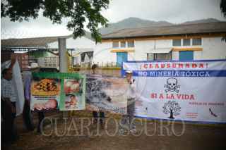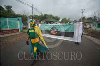 TINAJITAS, VERACRUZ, 27ABRIL2018.- Habitantes de Actopan y otros municipios, ademas de organizaciones sociales; marcharon por las calles de la localidad exigiendo frenar los proyectos mineros en su región. Los protestantes clausuraron simbolicamente las bodegas de la Minera Galvan. FOTO: ALBERTO ROA /CUARTOSCURO.COM