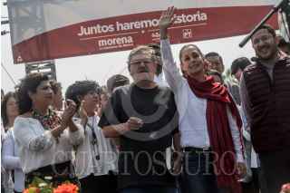 CIUDAD DE MÉXICO, 29ABRIL2018.- Clara Brugada arrancó su campaña a jefa delegacional de Iztapalapa acompañada de Claudia Sheinbaum, candidata a jefa de gobierno de la CDMX. En el acto estuvieron acompañadas por diversos actores políticos como, Paco Ignacio Taibo II, Gerardo Fernandez , y Marti Batres, entre otros. FOTO: TERCERO DÍAZ /CUARTOSCURO.COM