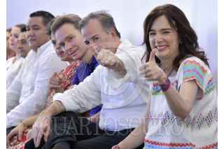 TAPACHULA, CHIAPAS, 29ABRIL2018.- José Antonio Meade, candidato a la Presidencia de la República por la coalición "Todos por México", acompaño a Roberto Albores Gleason, candidato a gobernador de coalición PRI-Partido Verde y Nueva Alianza en Chiapas; en su arranque de campaña. En acto también contó con la presencia de la esposa del candidato Meade, Juana Cuevas, y del gobernador Manuel Velasco Coello. FOTO: CUARTOSCURO.COM