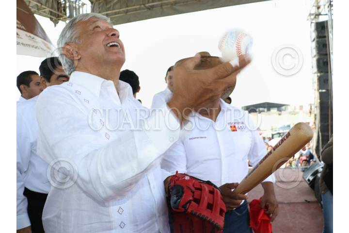 TEPEACA, PUEBLA, 30ABRIL2018.- Andrés Manuel López Obrador, candidato de MORENA a la presidencia de la república, se reunió con centenares de personas y simpatizantes de su partido en la central de abastos de Tepeaca donde dio a conocer su propuesta de gobierno. En la imagen algunos simpatizantes de morena en el estafo protestaron en contra del candidato a gonernador Miguel Barbosa Huerta. FOTO: SAÚL LÓPEZ /CUARTOSCURO.COM