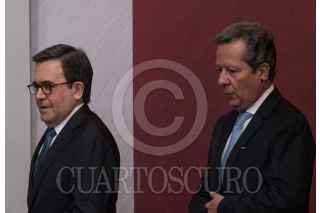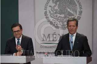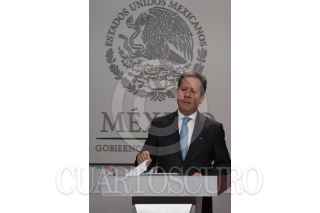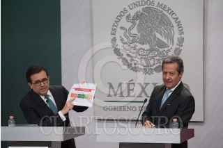 CIUDAD DE MÉXICO, 20ABRIL2018.- Ildefonso Guajardo, secretario de Economía, y Eduardo Sánchez Hernández, Coordinador General de Comunicación Social y Vocero del Gobierno de la República, durante conferencia de prensa indicaros que las negociaciones entre México, Estados Unidos y Canadá continúan para la modernización del Tratado de Libre Comercio de América Latina FOTO: MARIO JASSO /CUARTOSCURO.COM