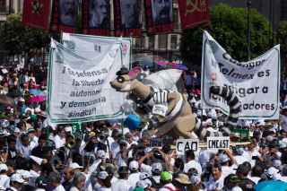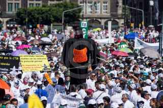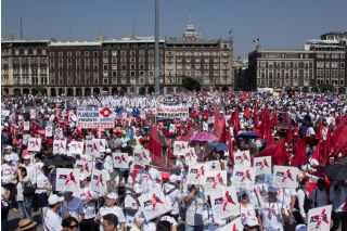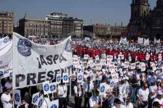 CIUDAD DE MÉXICO, 01MAYO2018.- Sindicalistas ferrocarrileros, pilotos, maestros, entre otros marcharon de Eje Central al Zócalo capitalino para exigir las respectivas mejoras en sus áreas de trabajo, esto con motivo de una conmemoración más del Día del Trabajo. FOTO: GALO CAÑAS /CUARTOSCURO.COM