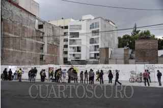 CIUDAD DE MÉXICO, 01MAYO2018.- Grupos colectivos se manifestaron esta tarde en contra de la construcción de un memorial en el sitio donde se encontraba el edificio derrumbado en Álvaro Obregón 286. Las personas demandaron a las autoridades justicia para las personas damnificadas y afectadas por el sismo del 19 de septiembre. FOTO: MARIO JASSO /CUARTOSCURO.COM